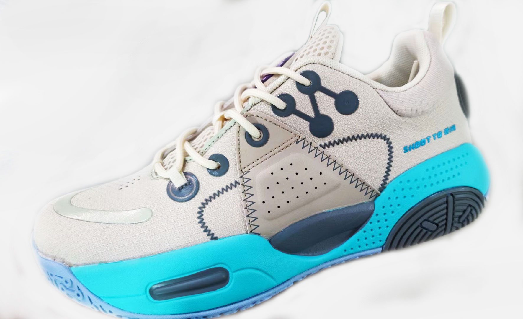 Đế giày được làm từ cao su tự nhiên có tính đàn hồi tốt và chống mài mòn một cách mạnh mẽ. Với đặc thù bộ môn Bóng rổ đòi hỏi vận động nhảy và chạy nhiều, khuôn đế được thiết kế để chống lật cổ chân, an toàn cho trẻ em và phái Nữ khi tham gia tập luyện và thi đấu.