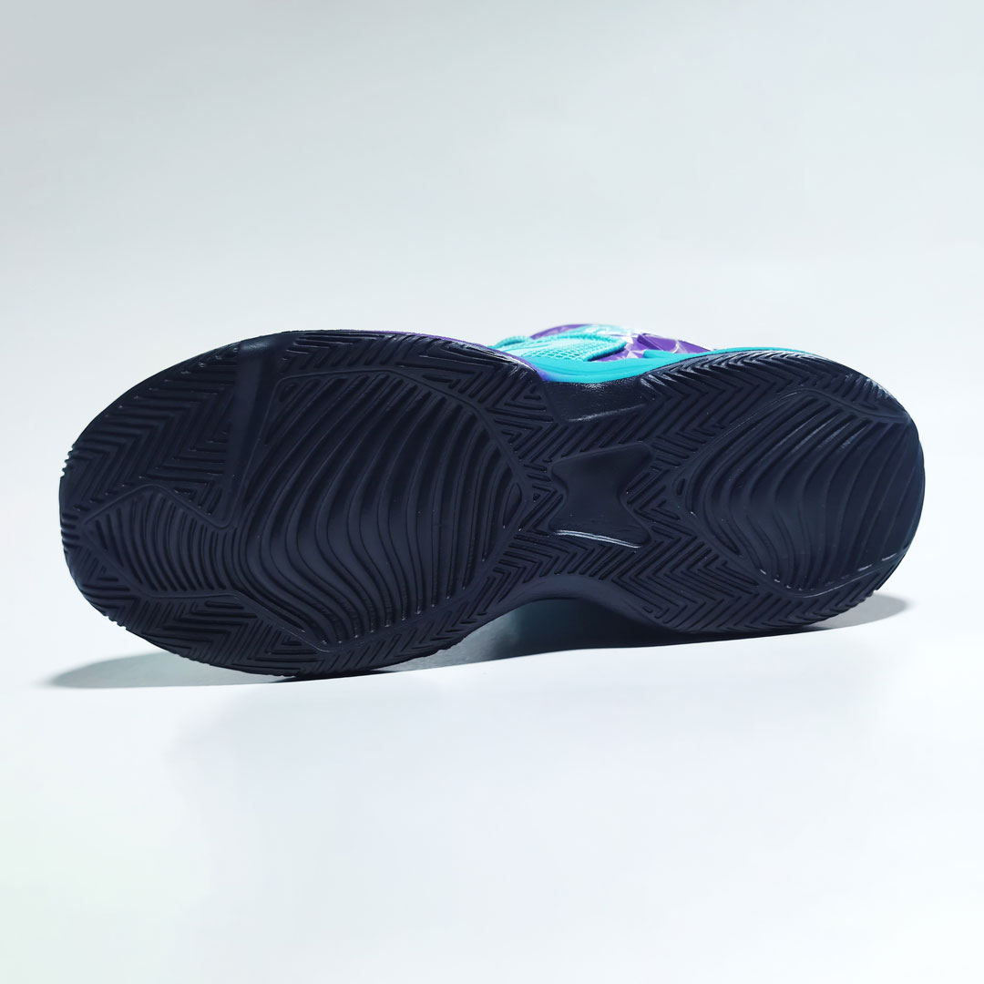 Đế giày được làm từ cao su tự nhiên có tính đàn hồi tốt và chống mài mòn một cách mạnh mẽ. Với đặc thù bộ môn Bóng rổ đòi hỏi vận động nhảy và chạy nhiều, khuôn đế được thiết kế để chống lật cổ chân, an toàn cho trẻ em và phái Nữ khi tham gia tập luyện và thi đấu.